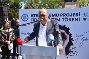 “Bölgemiz verimli topraklara sahip ama topraklarımızı tam anlamıyla maalesef kullanmıyoruz. Bu gerçekten üzücü bir olay. Topraklarımızı sağlıklı kullanmamız için özellikle ata tohumlarına ihtiyaç olduğunu biliyoruz. Temizlik İşleri Park Bahçeler Müdürü ve ziraat mühendisi arkadaşlarıma ve ekiplerine şükranlarımı sunuyorum. 2020 yılında önce onları İzmir, Aydın ve Seferihisar’a gönderdik, köylerimizden tohum topladık ve ilk etapta kurduğumuz 3 serada üretime başladık. Şu anda 5 tane seramız var ama bu sayıyı daha da çoğaltacağız. Sizlere ileride çok daha fazla fide dağıtacağız. Köylerimize kadar bu fideleri dağıtmak istiyoruz. Şu anda 14 farklı ürünün fidesi var elimizde. Kemer pırasası, mısır gibi ürünlerin de daha denemeleri yapılıyor. 2020, 2021 ve 2022’de ektiğimiz fidelere bakıyoruz, yaban olanları temizliyoruz ve kimyasal bir katkı olmayan, genetiği sağlam ata tohumlarını üretiyoruz. Sizler dışarıdan aldığınız fideleri bir mevsim kullanabilirsiniz, fide vermez. Onlar atalarımızdan gelen tohum değil. Biz 3 yıldır ata tohumuna ulaşmak için mücadele veriyoruz.