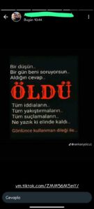 Ersin Şen paylaşımında “Bir düşün. Bir gün beni soruyorsun. Aldığın cevap ÖLDÜ. Tüm iddiaların, tüm yakıştırmaların, tüm suçlamaların, ne yazık ki elinde kaldı. Gönlünce kullanman dileği ile… Hakkını helal et…”