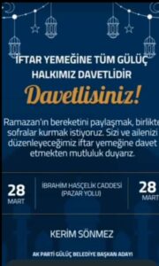 İFTAR YEMEĞİNE TÜM GÜLÜÇ HALKIMIZ DAVETLİDİR.