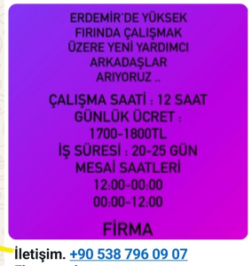Erdemir’de yüksek fırında çalışmak üzere yeni yardımcı işçiler aranıyor. İlanda belirtilen şartlara göre, çalışanlar 12 saatlik vardiyalar halinde görev yapacak.