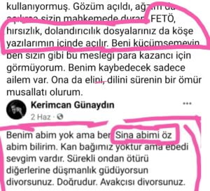 Sosyal Paylaşım sitesinde elinde fetö, dolandırıcılık ve hırsızlık belgeleri olduğunu itiraf ederek paylaşan Kerimcan Günaydın (Junior Sina’yı koruyan  koruyucu kardeşi ) hakkında şu ana kadar konu ile alakalı yetkililerin ne hikmetse harekete geçmediği ve sebebinin de yazılarımızı takip eden okuyucularımız tarafından merak edildiğini bilgilerinize sunarız .